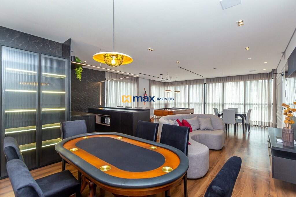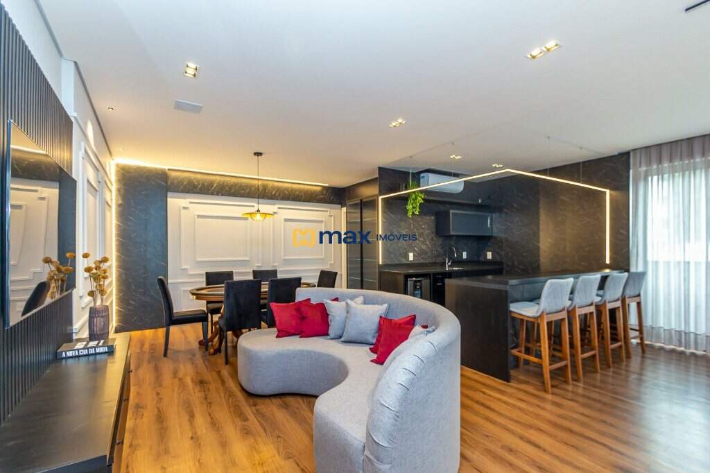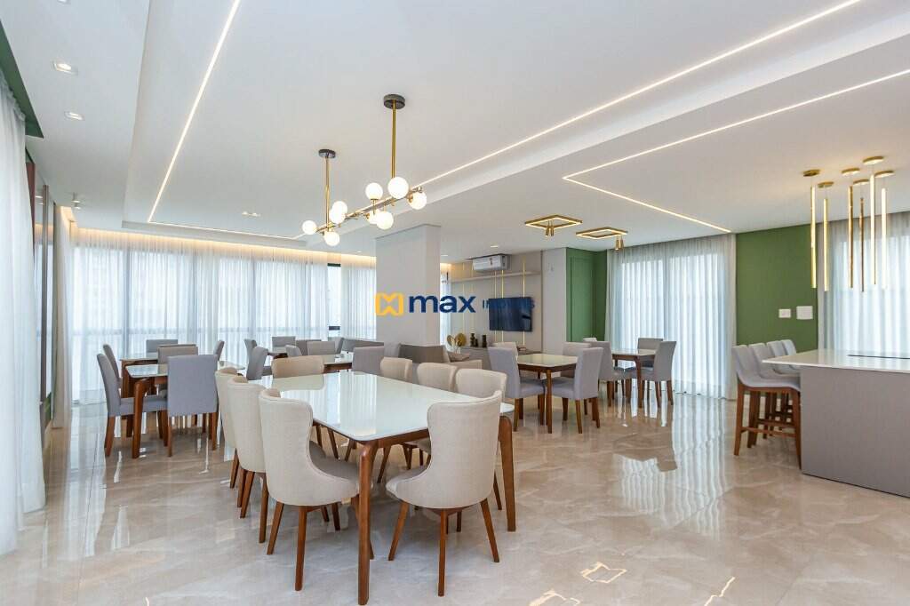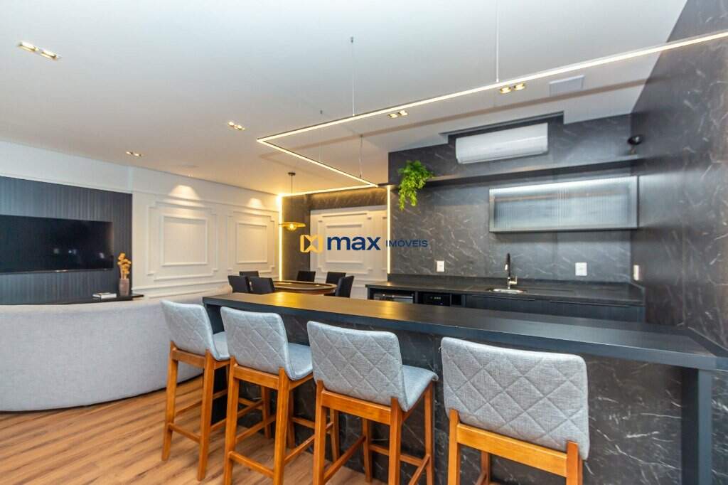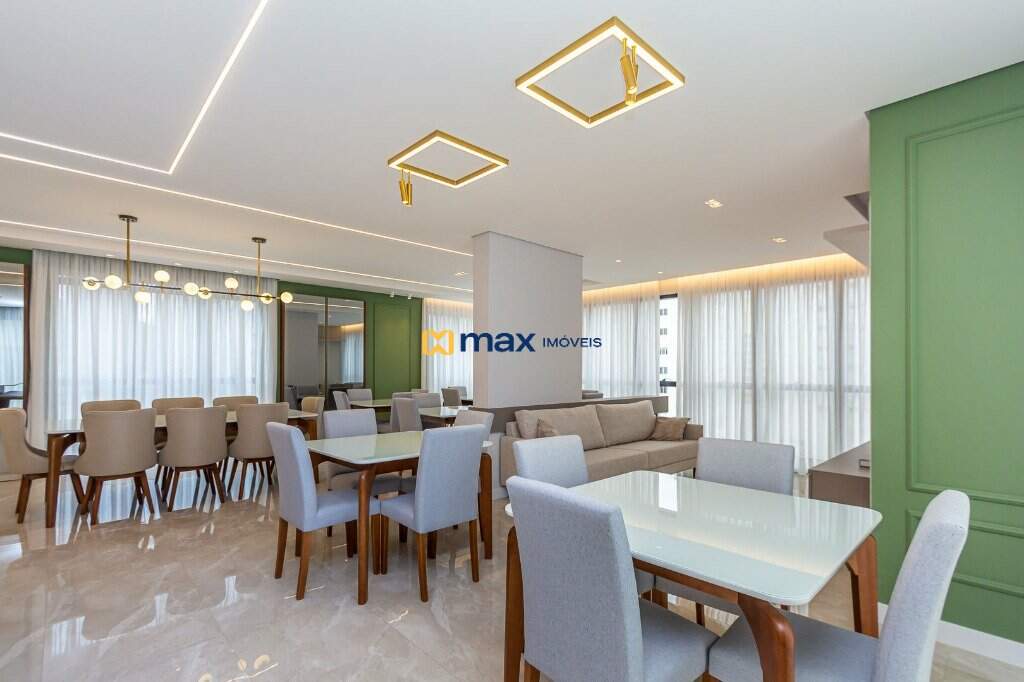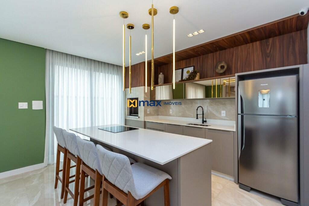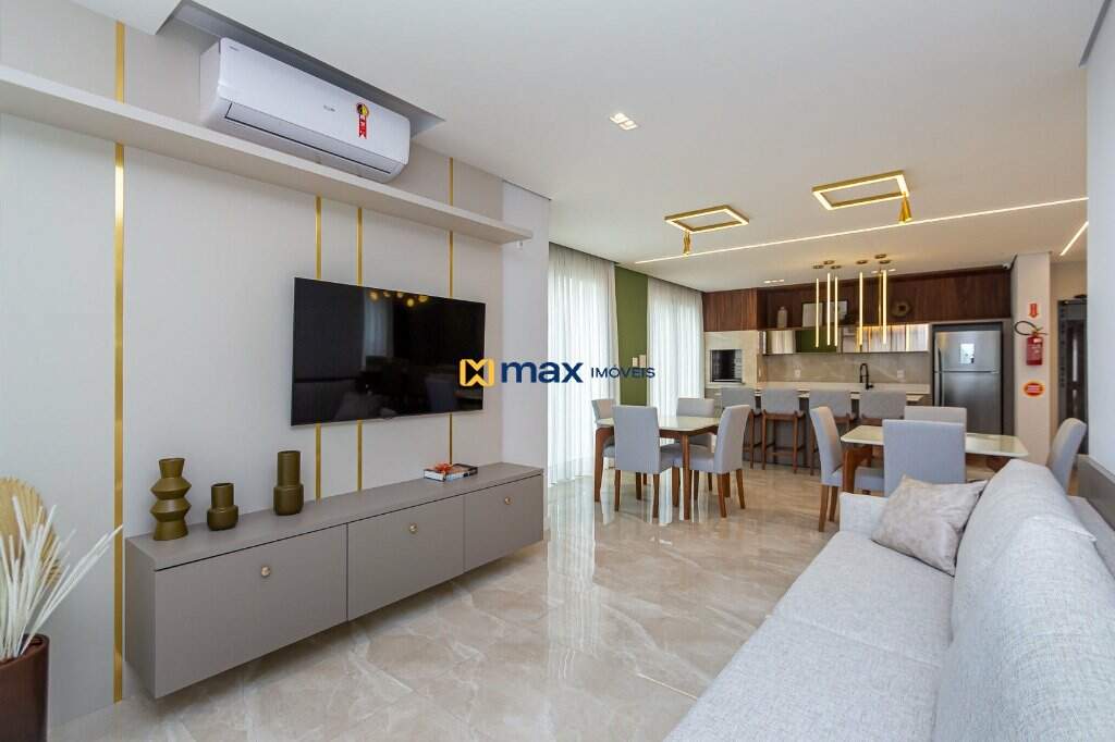 Com 03 suítes, living, sala de jantar, cozinha americana, churrasqueira, área de serviço, lavabo, fechadura com senha na porta, porcelanato, aquecimento a gás, espera para split, totalmente mobiliado e com 02 vagas de garagem.