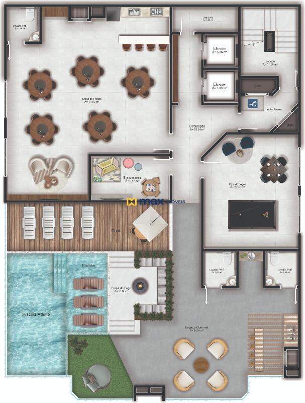 Área de lazer completa, excelente padrão de construção de acabamento.