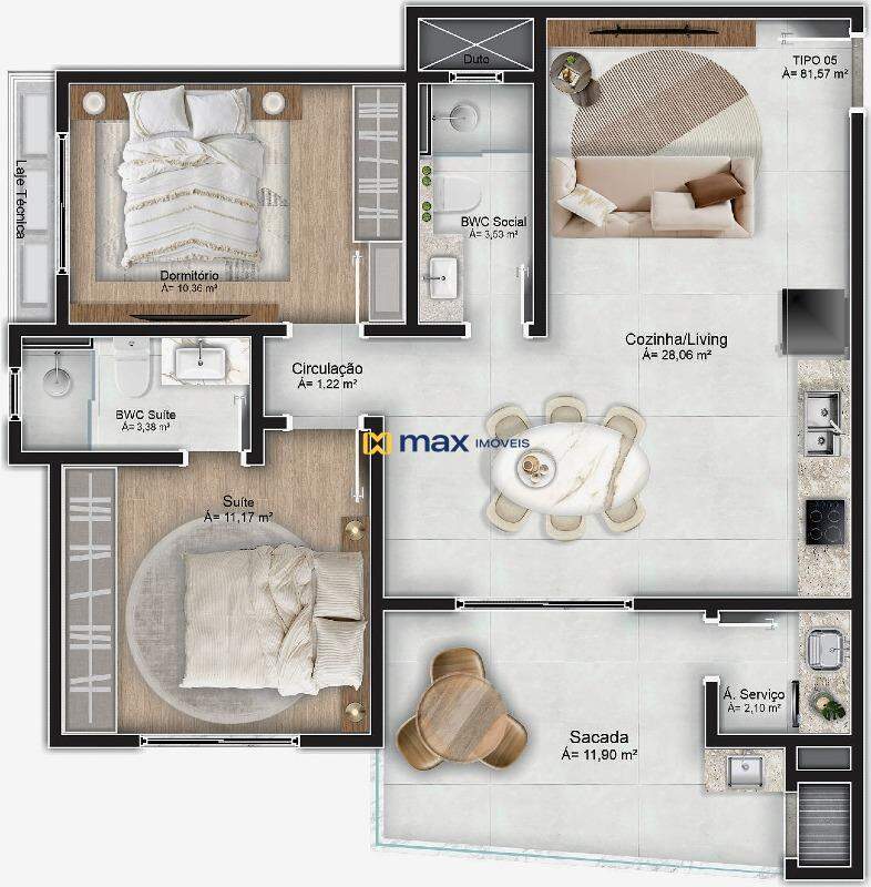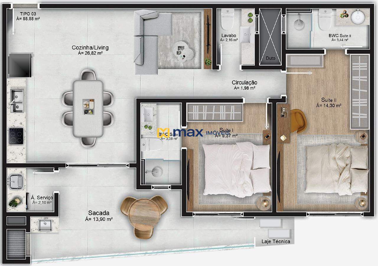 Lançamento: Magestic - Apto 84m² - 1 Suíte + 2 Dormitórios - Gravatá, Navegantes
