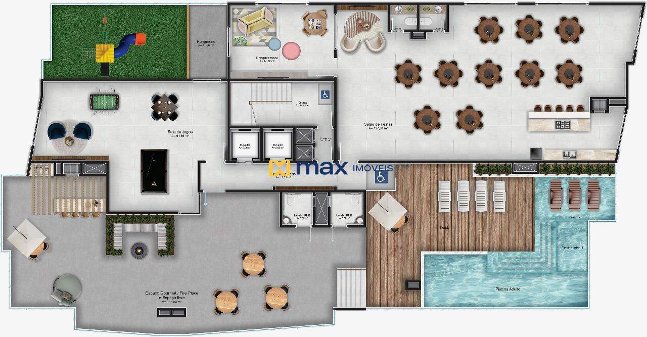 Área de lazer completa, excelente padrão de construção de acabamento.