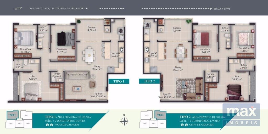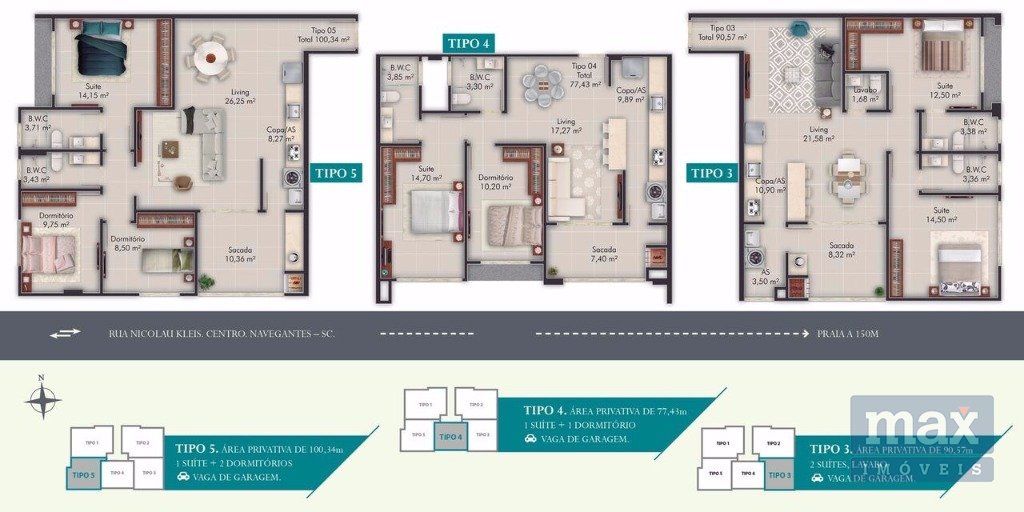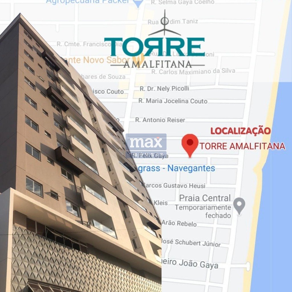 Com localização privilegiada e estratégica, no centro de Navegantes. Distante apenas 150 metros da praia e próximo a diversos comércios e serviços.
